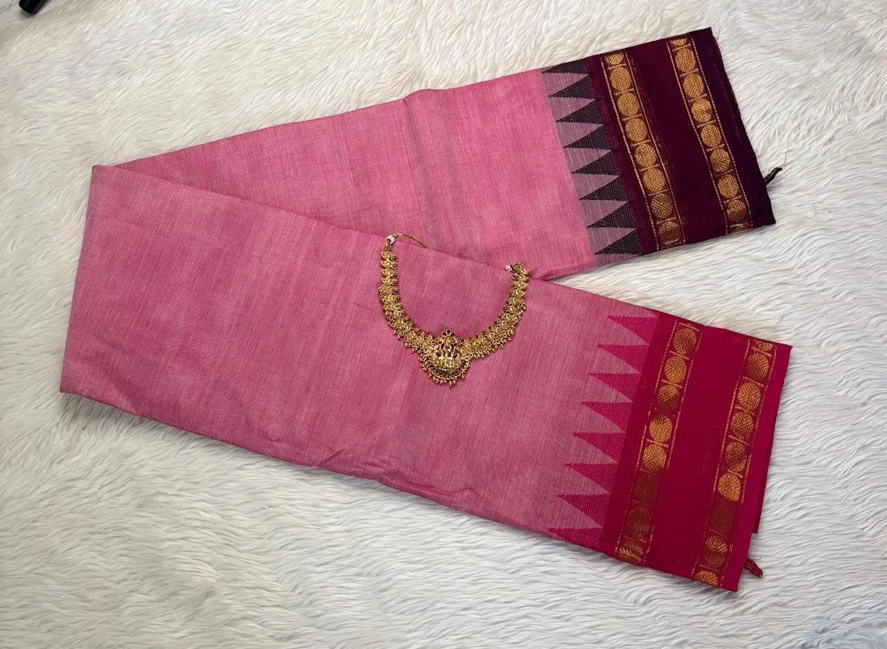 kanchi cotton saree with Running Blouse- Ganga Jamuna – Baby pink