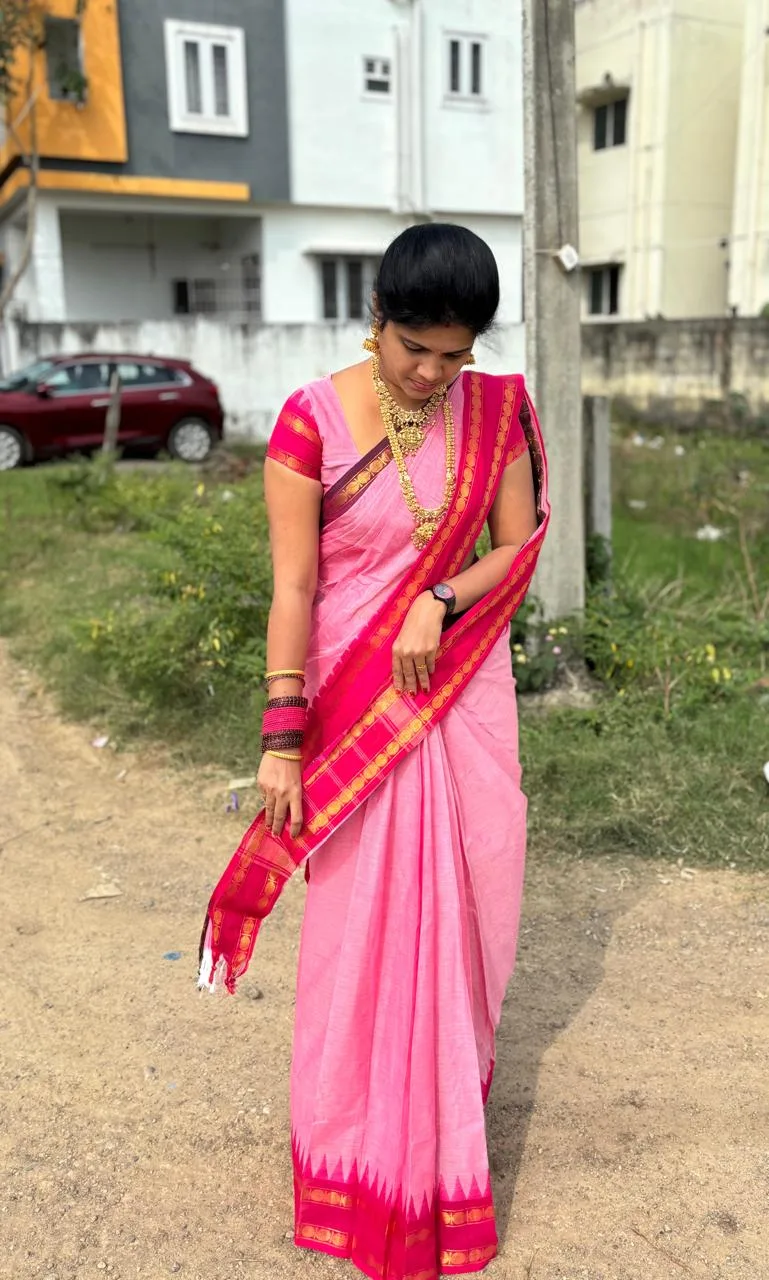 • kanchi cotton saree with Running Blouse- Ganga Jamuna - Baby pink