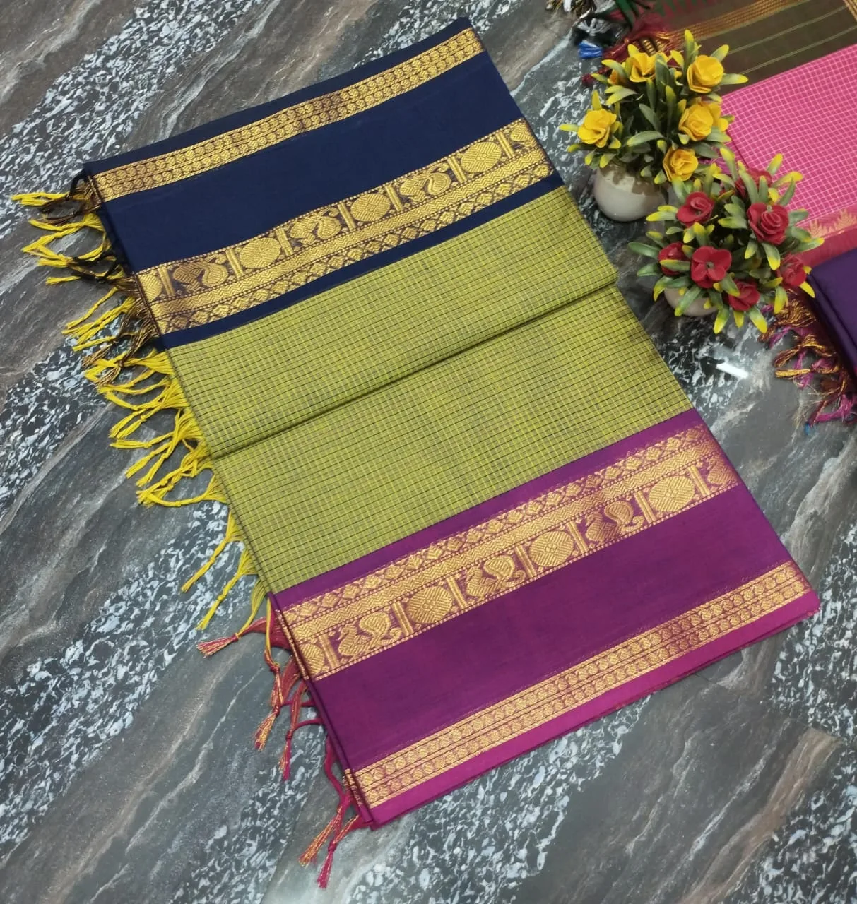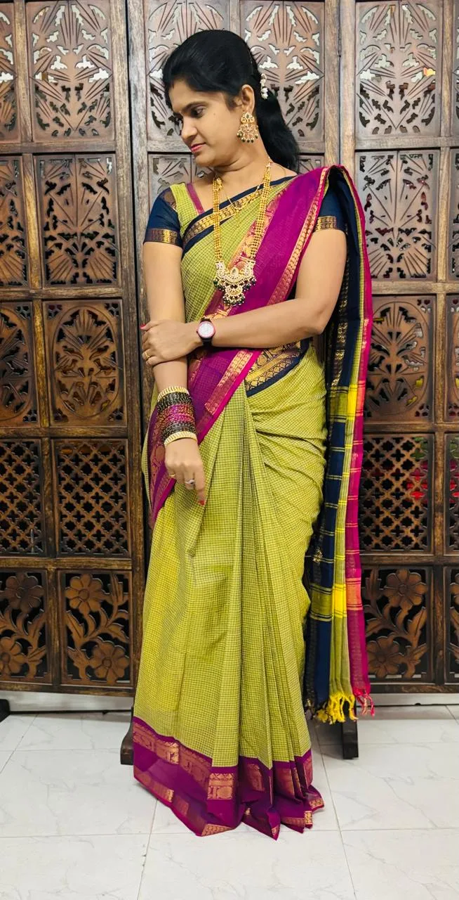 • kanchi cotton saree with Running Blouse- Ganga Jamuna Border- Light Green (pre booking 29/9/25 Dispatch)