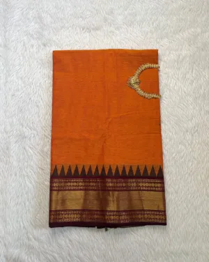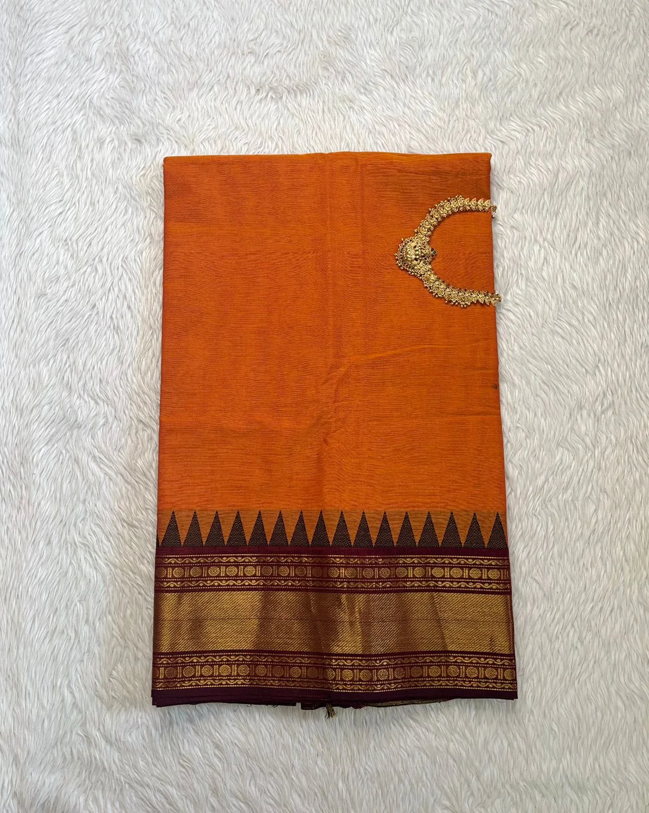 kanchi cotton saree with Running Blouse – Kanchi cotton – Coffee brown small borderr (Copy)