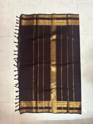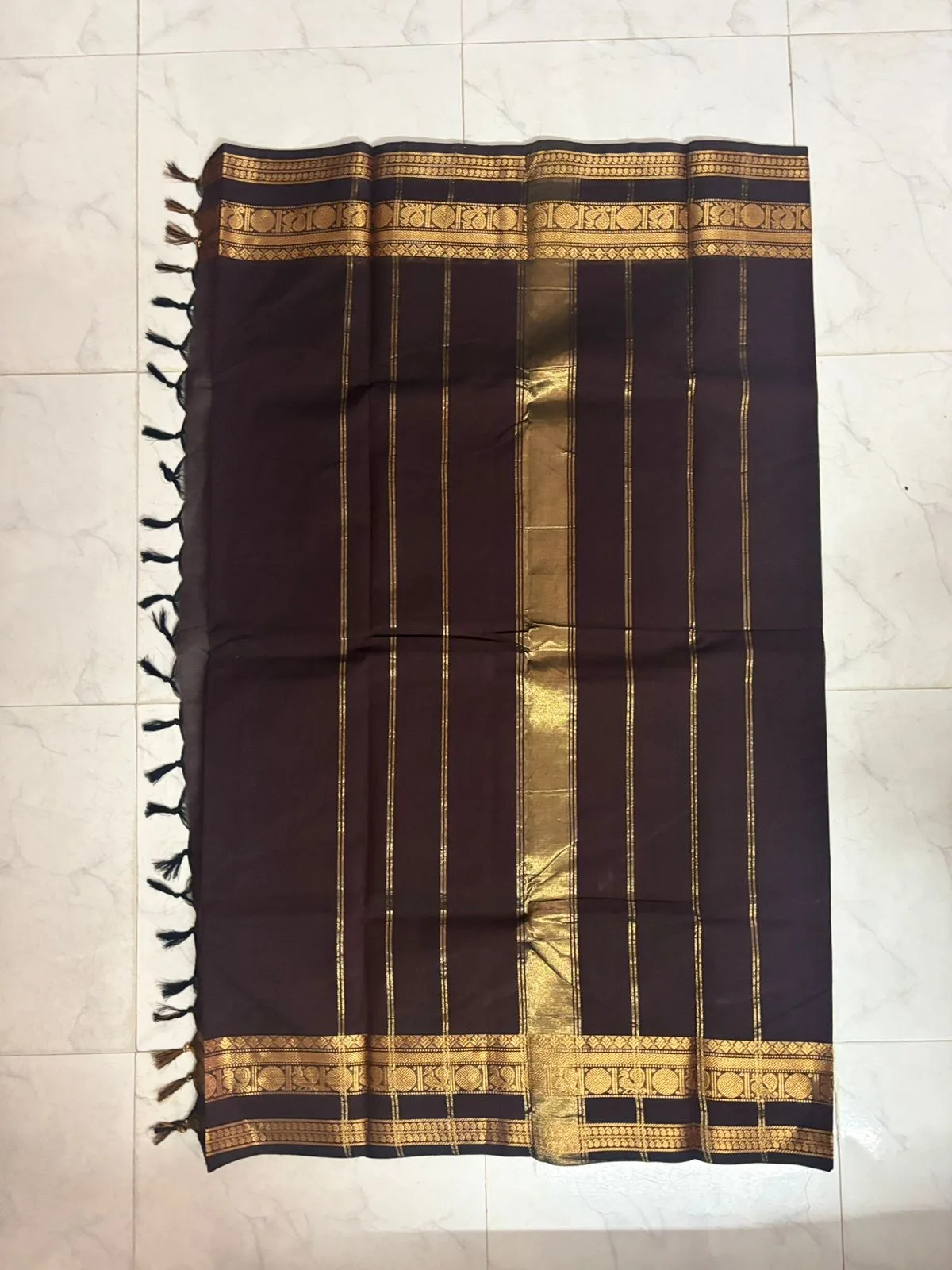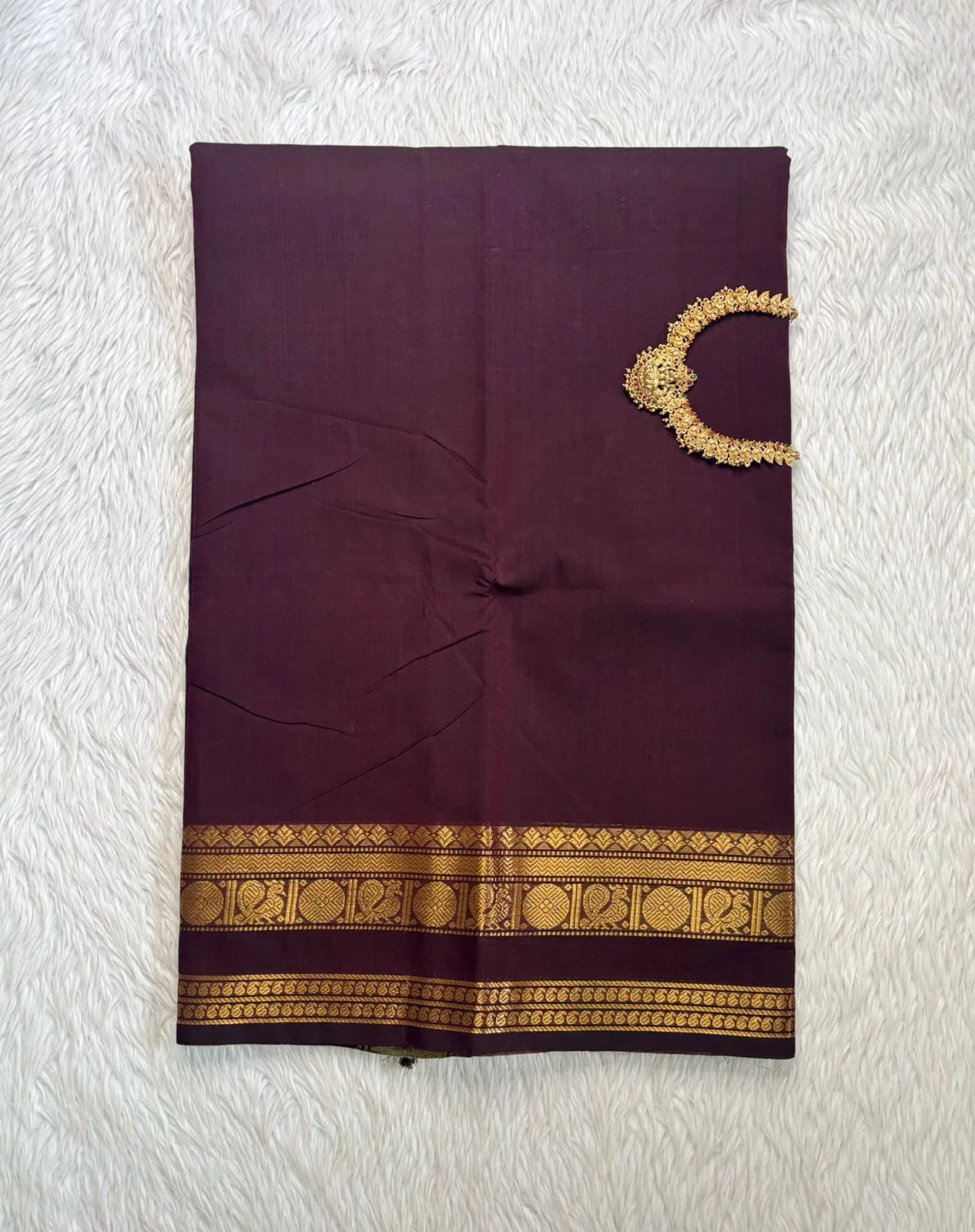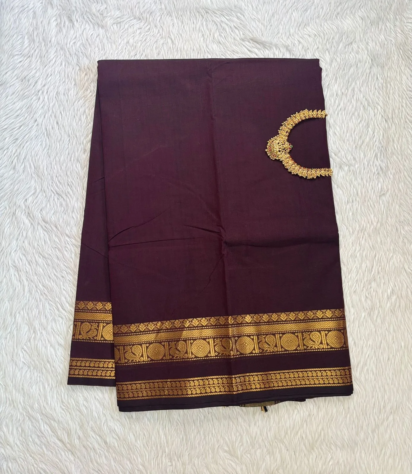 kanchi cotton saree with Running Blouse – Kanchi cotton – Coffee brown small borderr