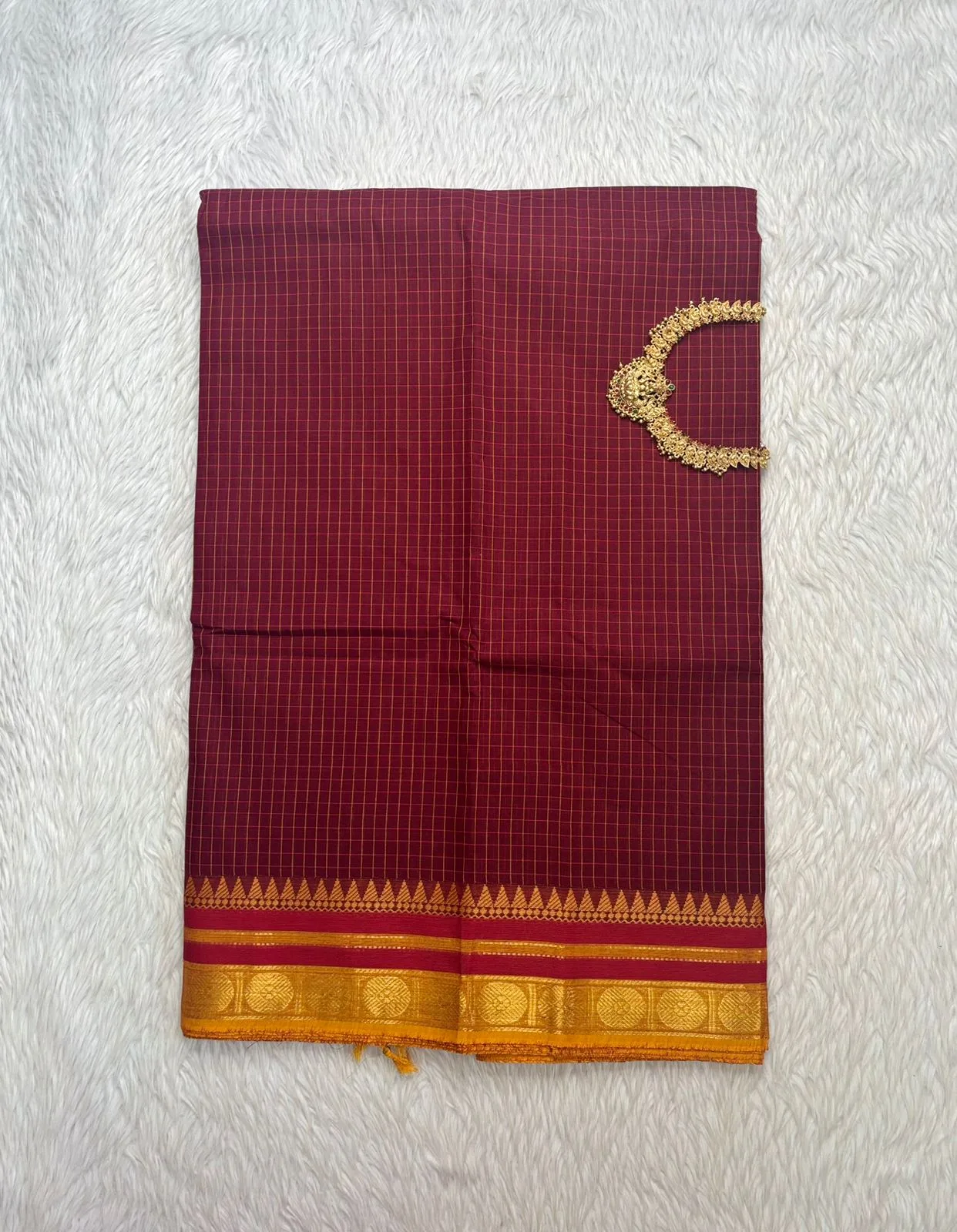 kanchi cotton saree with Running Blouse- Small Border- Maroon Colour-kanchi Cotton
