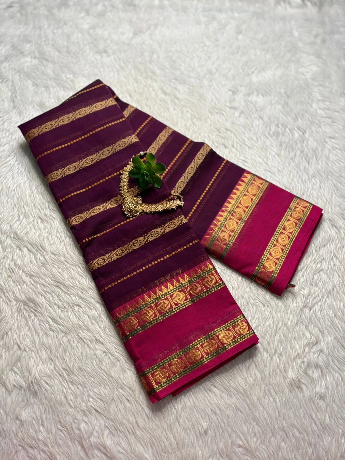 Kanchi Cotton Veludhari saree with Running Blouse- maroon with Magenta pink