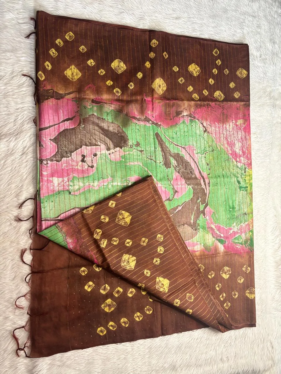 Simple stains and dots are usual in sungudi sarees and will not be considered as damage.