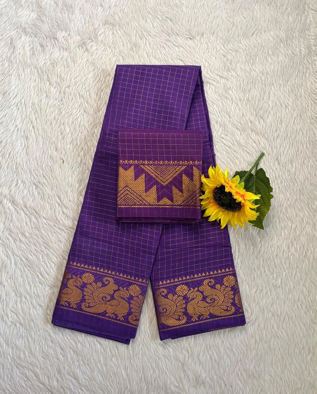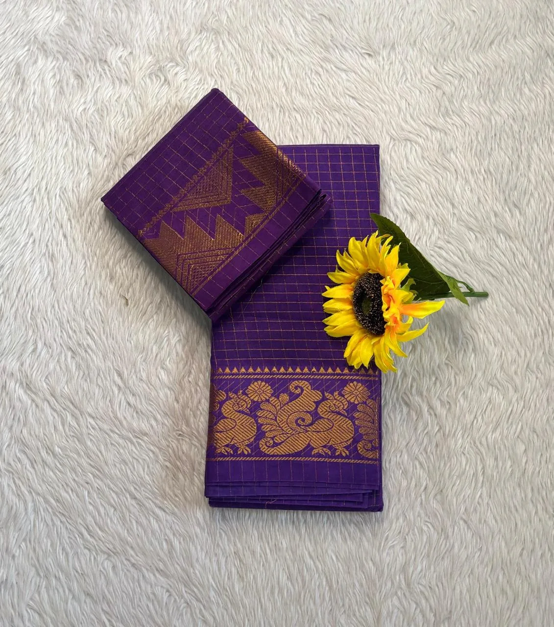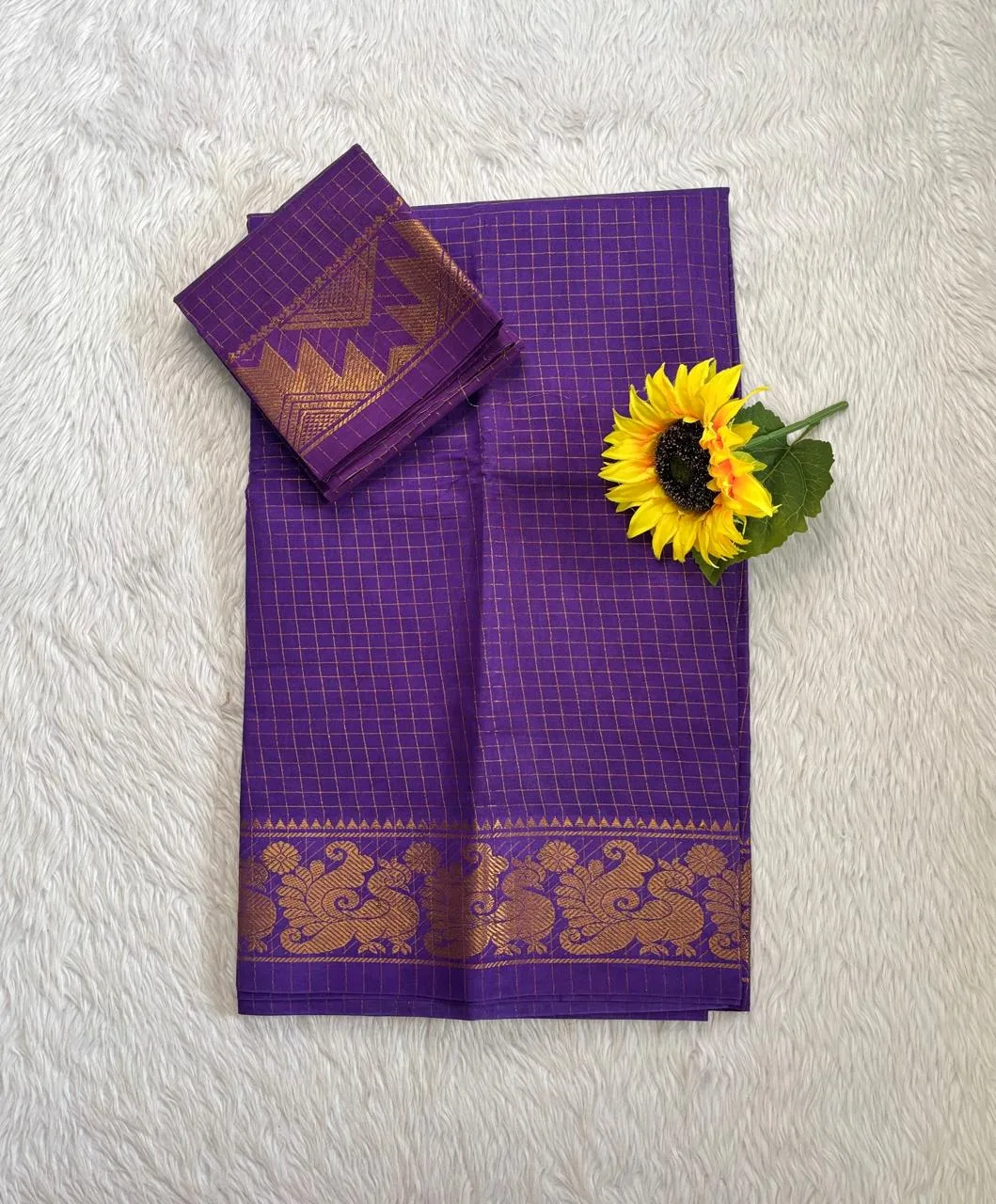 Madurai Sungudi Cotton Self Zari Checked – Lavender – Self Zari Gold