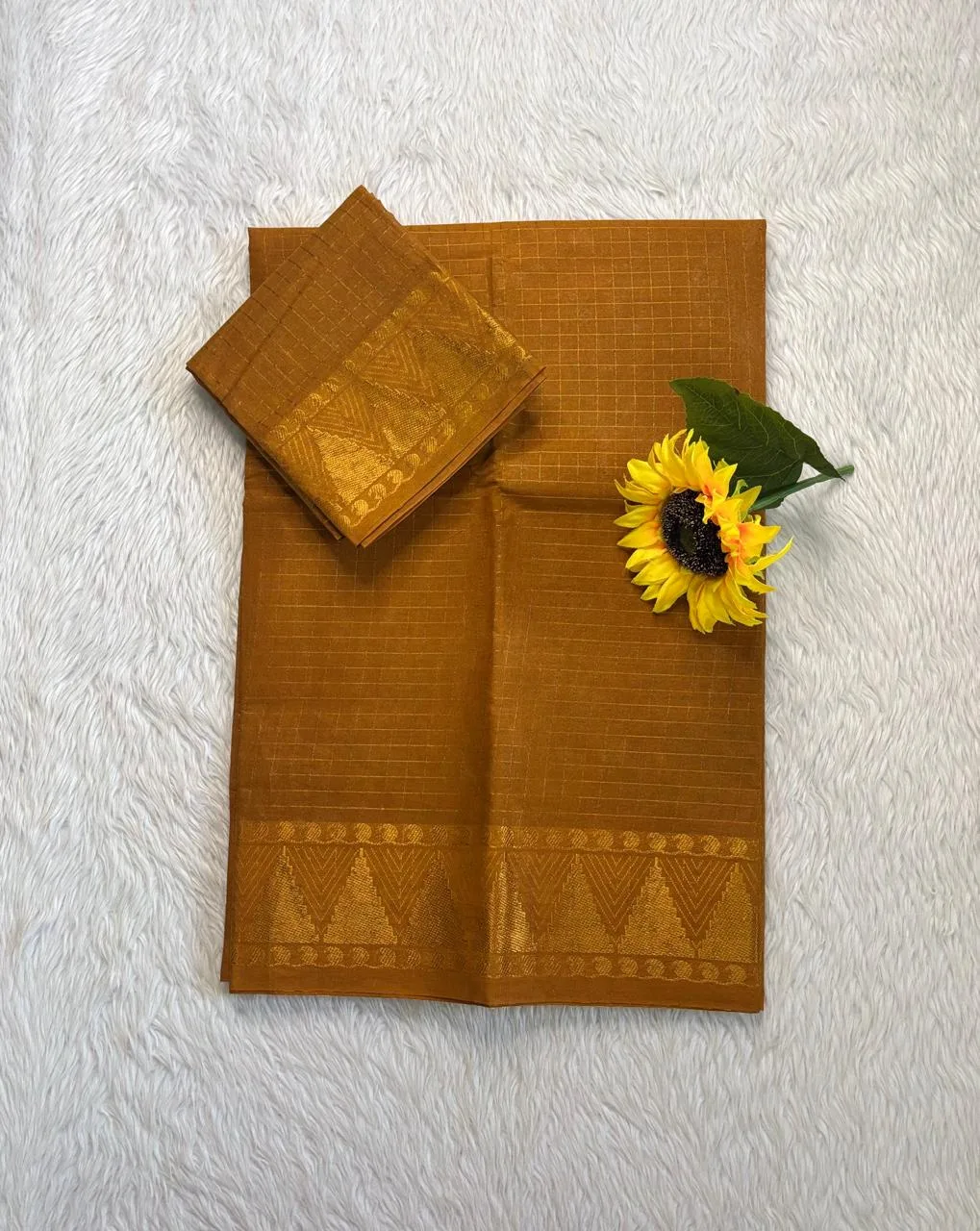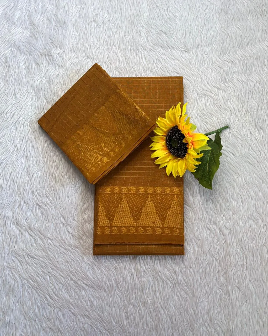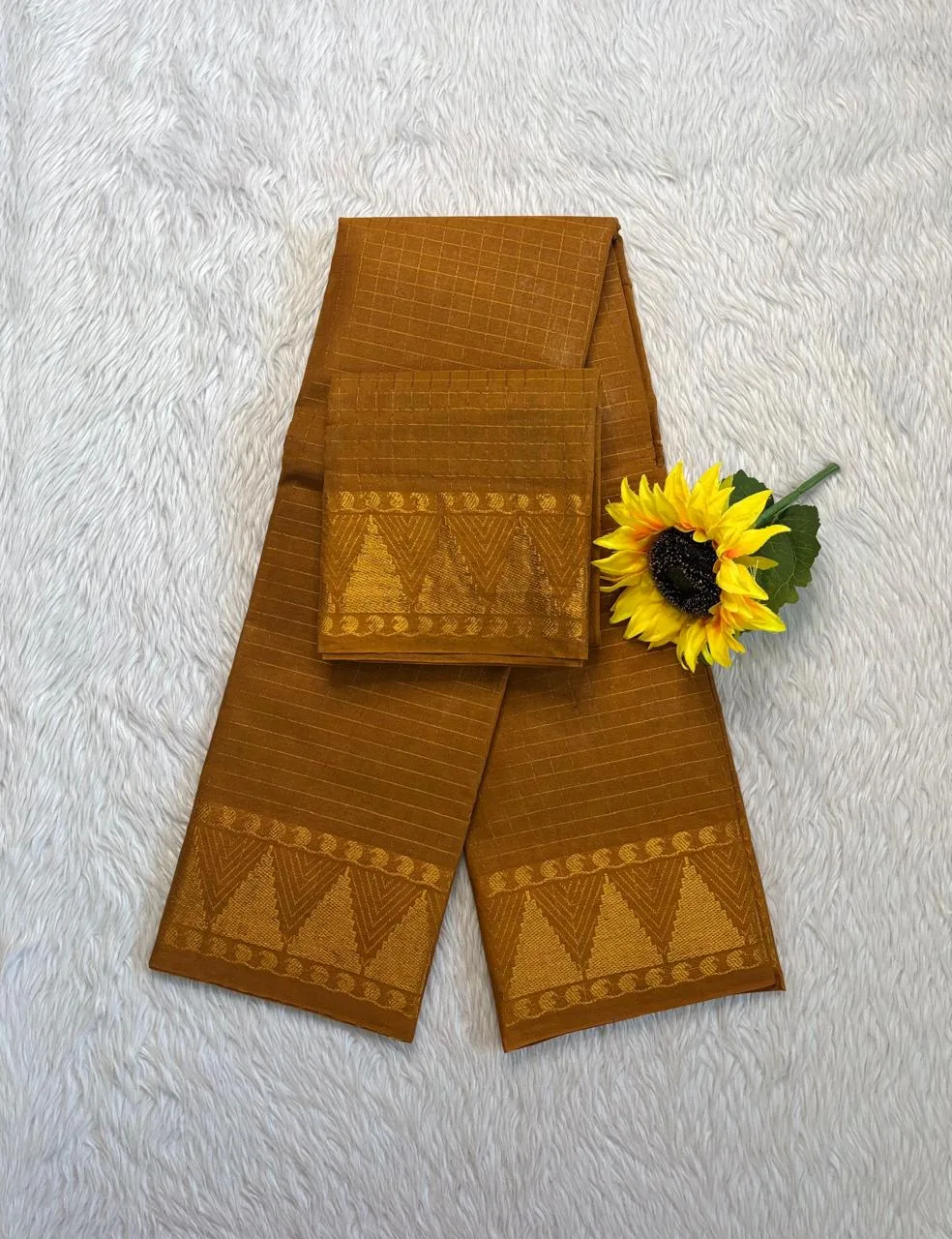 Madurai Sungudi Cotton Self Zari Checked – Mustard yellow – Self Zari Gold