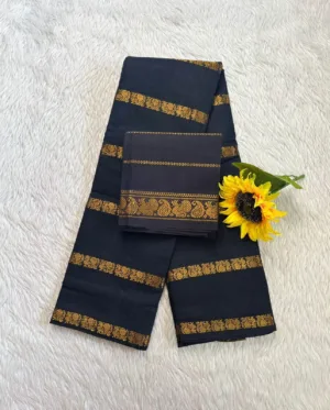 Madurai Sungudi Cotton Veludhari with blouse -Sungudi peacock Black