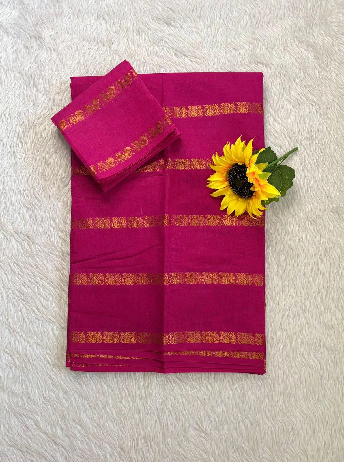 Madurai Sungudi Cotton Veludhari with blouse -Sungudi peacock pink