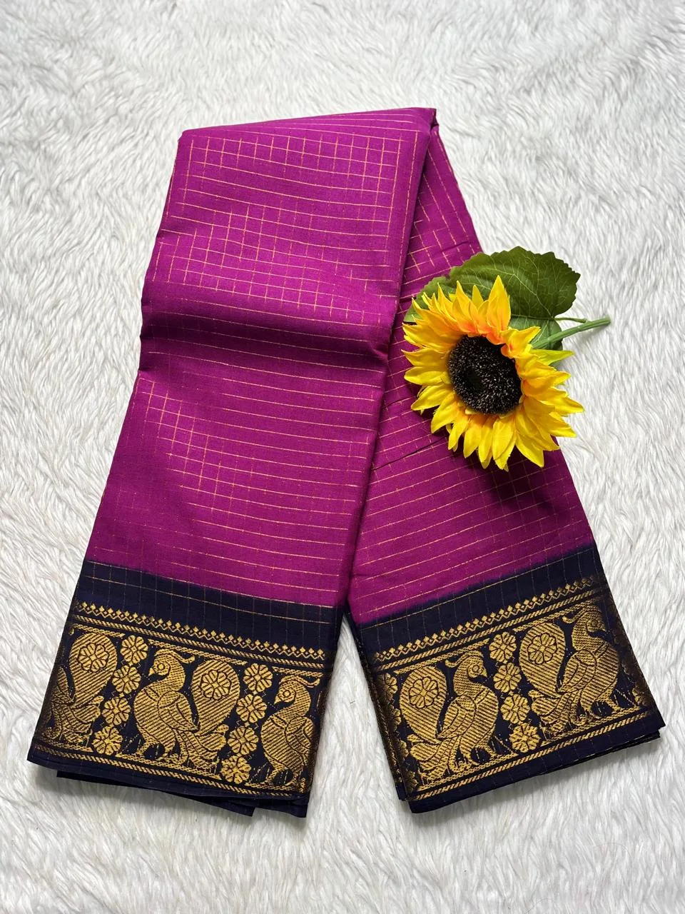 Slight sand on sarees, due to the drying process in sunlight, will not be considered as damage. Due to lighting, slight colour variation may be at real view.