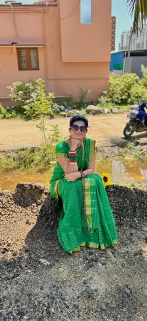 Madurai sungudi cotton Veludhari Small Self border -Bottle green